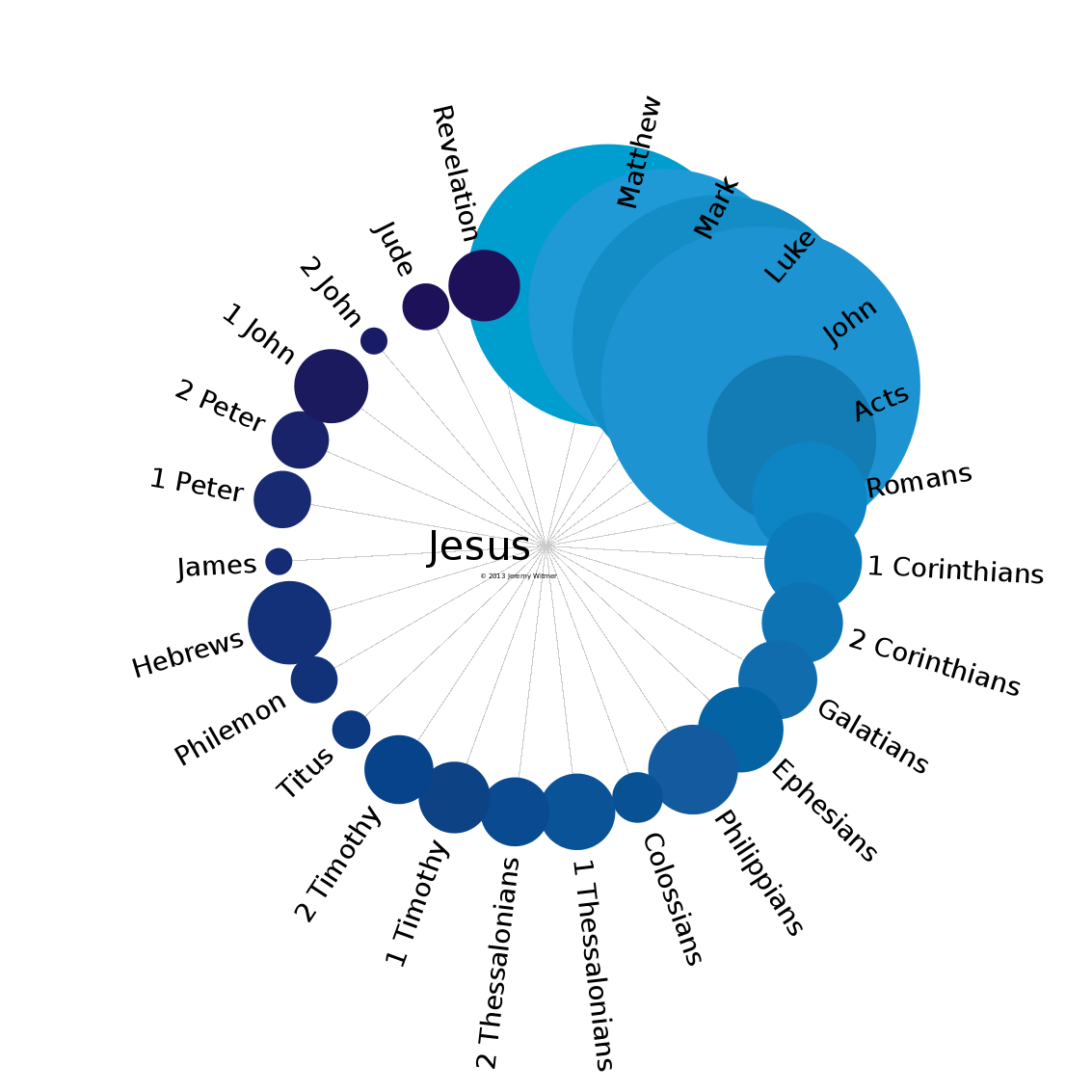 The code doesn’t filter the instances of Jesus and Christ from the phrase Jesus Christ, so there’s an overlap in the counts.