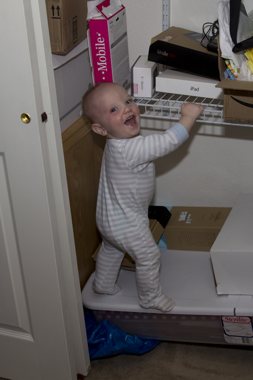 You’re solving problems now, more and more complex each day. We’re slower catching on than you, thinking that we can keep things from you by just hiding them from view. That’s certainly not a good approach. You even give us a look that says “really?”. Still, I certainly hope that you’re still as impressed with your parents in five years as you are now. You get this amused/awed look when we do things you thing are amazing, apparently like stealing food off of your highchair tray.