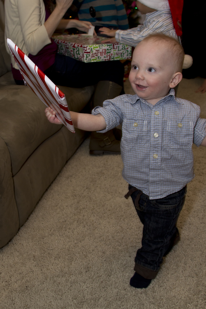 While it’s technically your second Christmas with us, it still feels like the first in so many ways, since you’re running around and talking and handing out presents to people. You’re not so interested in the presents themselves, just the opening the paper and finding out that there’s something inside. Also, stockings are pretty much made just for emptying. We should have just wrapped a whole bunch of empty boxes and put them all under the tree. I have a feeling that won’t work next year. Maybe we’ll try that if you have a sibling. The only thing to distract you was the racquet balls we put in the top of your stocking. You pulled those out, and it was “stocking over”. Of course, life is all about the balls right now. When you saw Santa at the zoo, you happily sat on his lap and announced that you’d like a “ball”, and nothing else. The living room is a cross between a tennis court and a bocce lawn; balls all over the place.