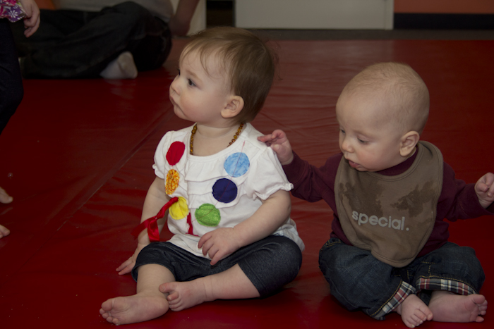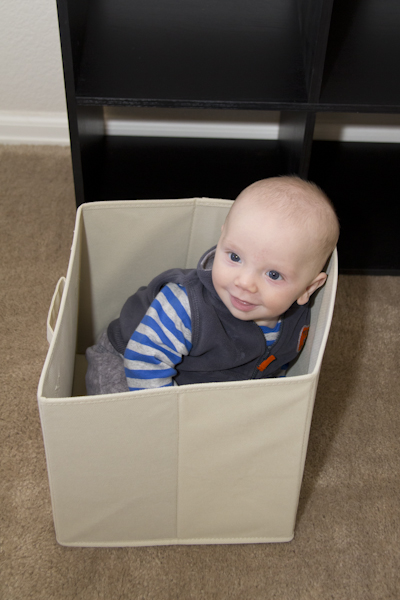 Fortunately, you’ve also had lots of fun this month, too. You got your first birthday party invite from cousin Grace, who flew in for a long visit from England. You played and played at the Little Gym. Too bad you’re not big enough for cake yet. You got to try eating rice cereal this month, but it turns out you’re not quite old enough for that, either, leading to a few unhappy evenings.