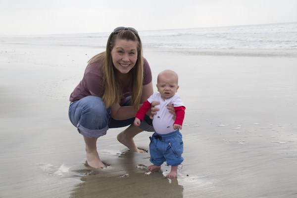 You got to go on your first airplane, kicking off a long lifetime of travel if your mom has anything to say about it. We took you out to San Diego, and then up to see Opa and Oma. You also got your first trip to the ocean, which didn’t seem to go over so well…guess you’re not ready for scuba diving just yet. Opa still had his 1960’s vintage Marklin train set up around the Christmas tree, and you were fascinated with it, watching it go round and round the tree.