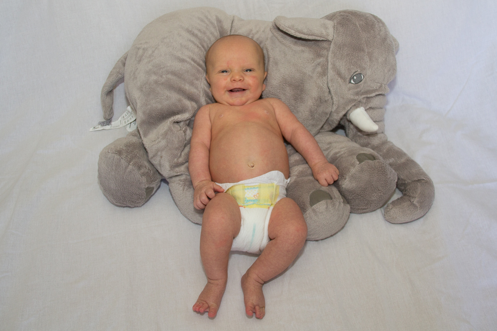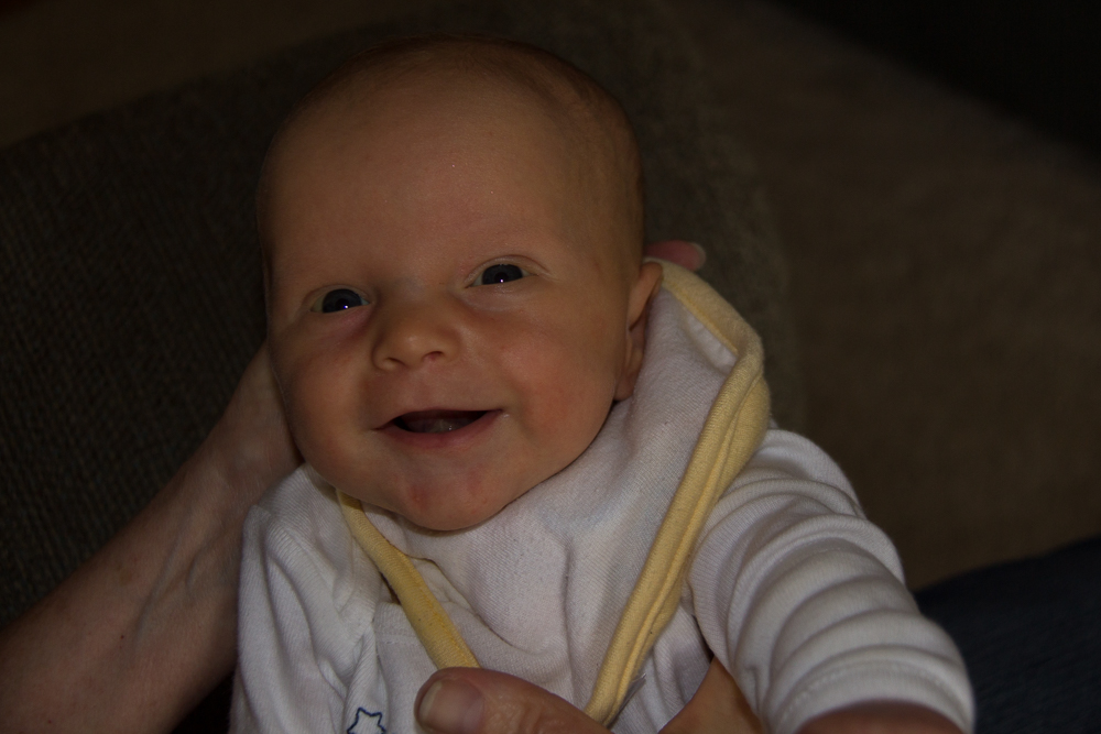 You’ve learned to smile this month, which is always precious. Each day you smile and focus on us a little better.
