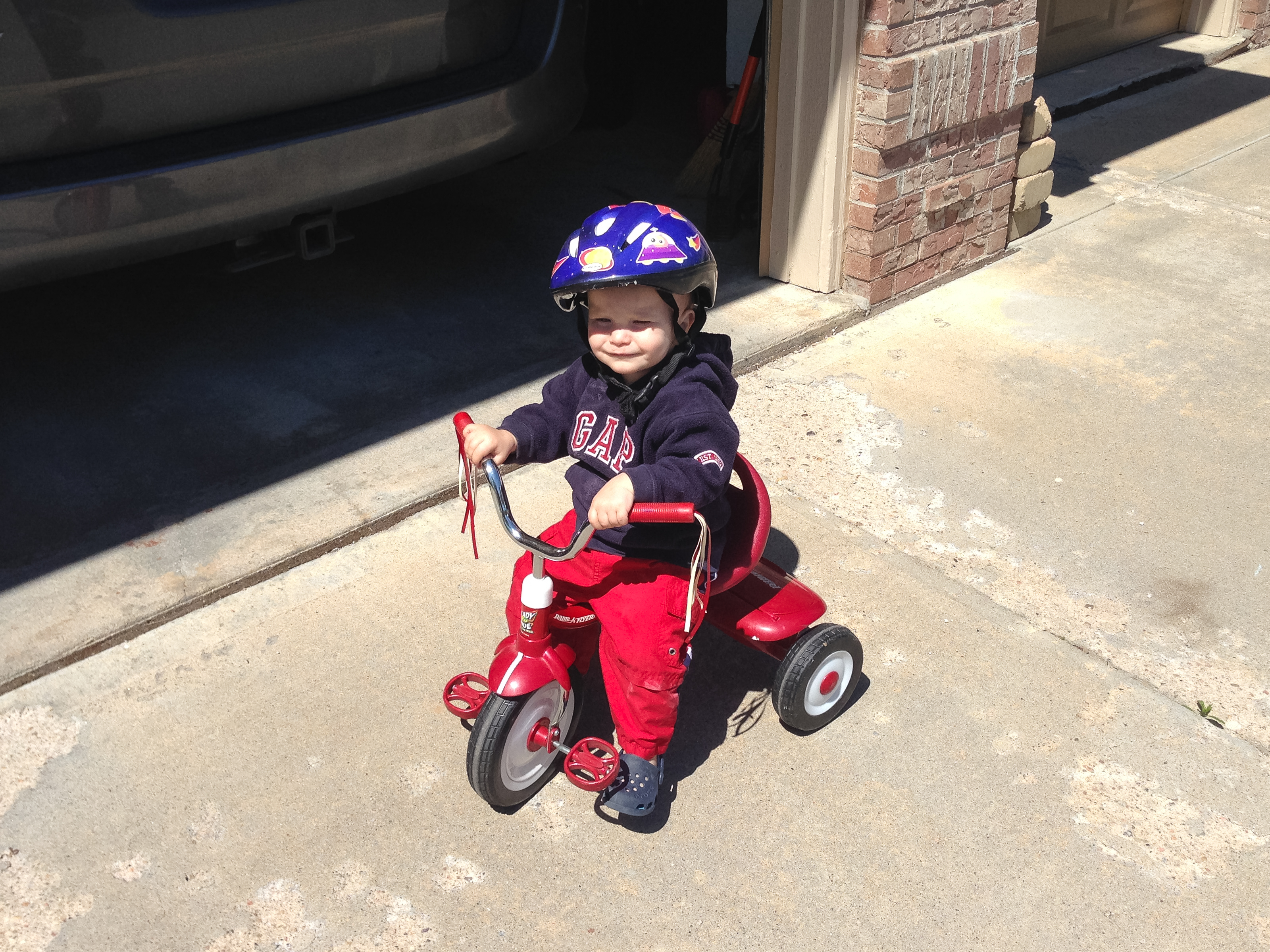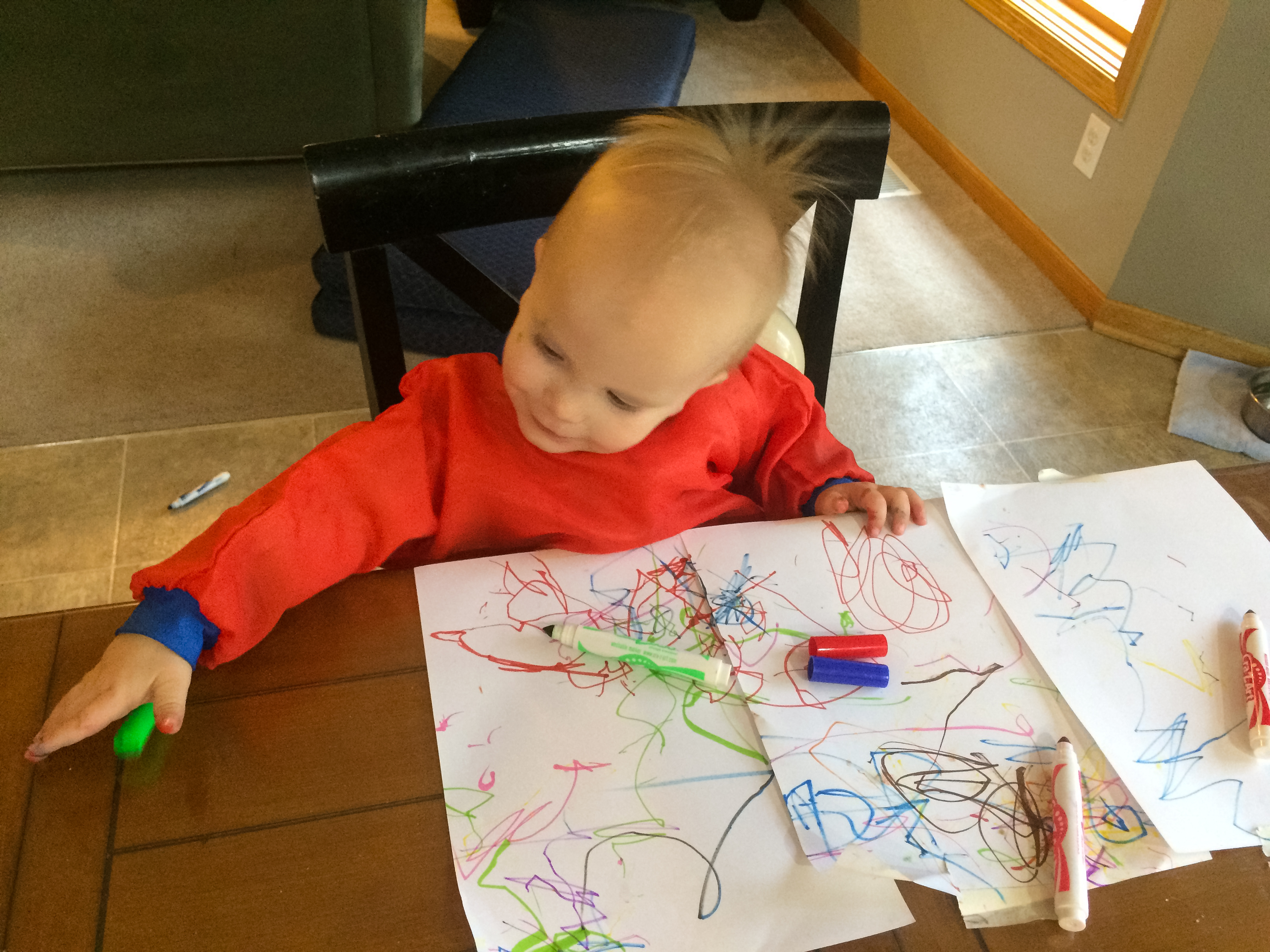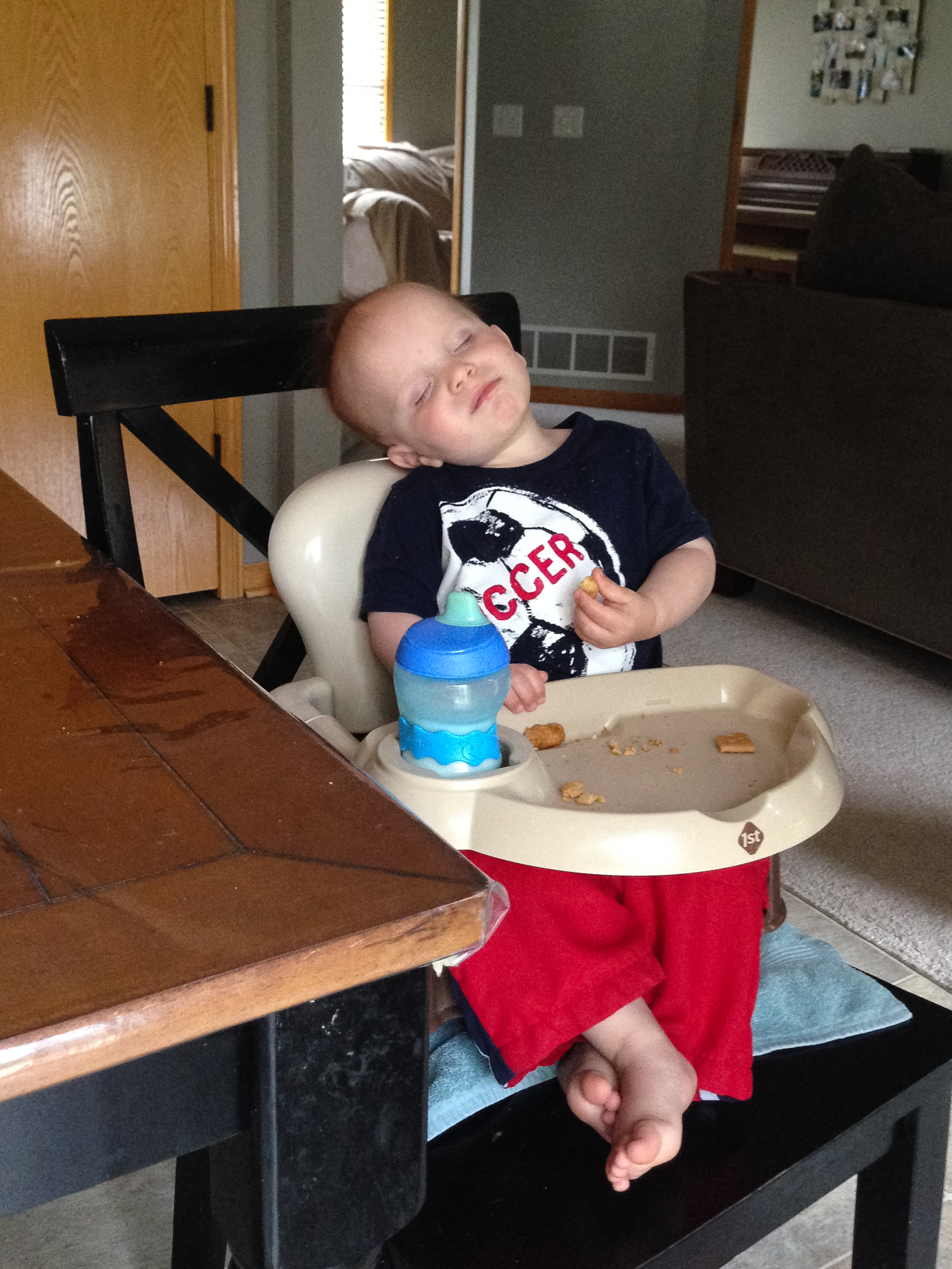 You’re learning to run, escape and discovering how things in the world work, from flashlights to blowing noses, to the gates in your playroom. You announced firmly to the world that you’d play in your playroom only because you want to by escaping by one gate by shaking it back and forth, presenting yourself in the kitchen, and the climbing back over the other gate to resume playing. Message received, we moved the gates out to the garage. You love to build with Daddy and Seth, from forts to car tracks, or whatever. Cars and motorcycles bring hours of fun, and plenty of driving noises, which are unique and fun to listen to you make. You’re certainly a lot faster, as you run playfully away from diaper changes and instructions. It’s funny now…