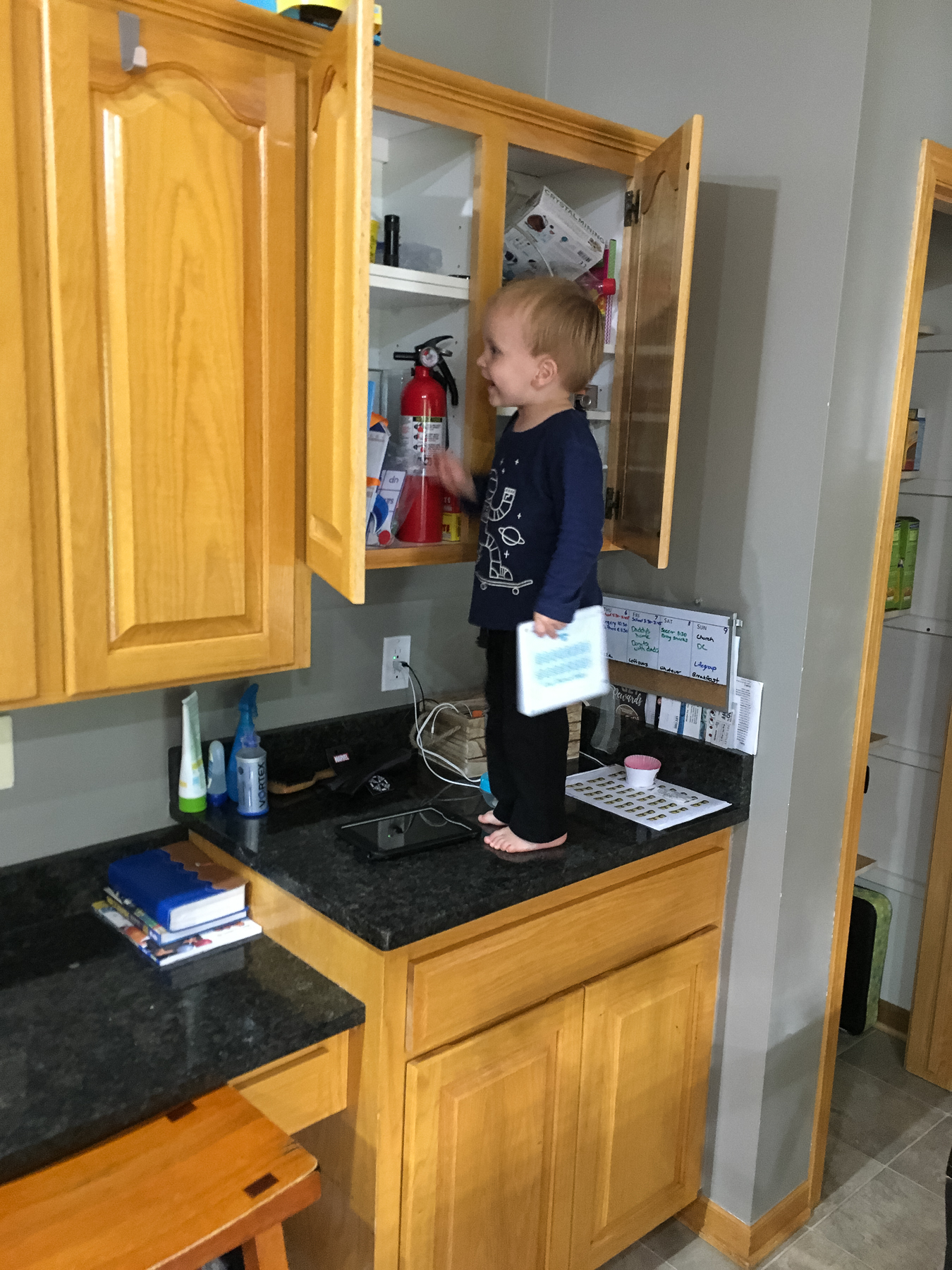 It’s been a fine line between helping and…not exactly helping. The upstairs toilet was plugged by someone else in the house. I flushed it to try to clear it, and it almost overflowed. I left to get the plunger and things. You wandered in to find me, “Daddy, it’s leaking!” “Did you flush the toilet?” “Yep!”