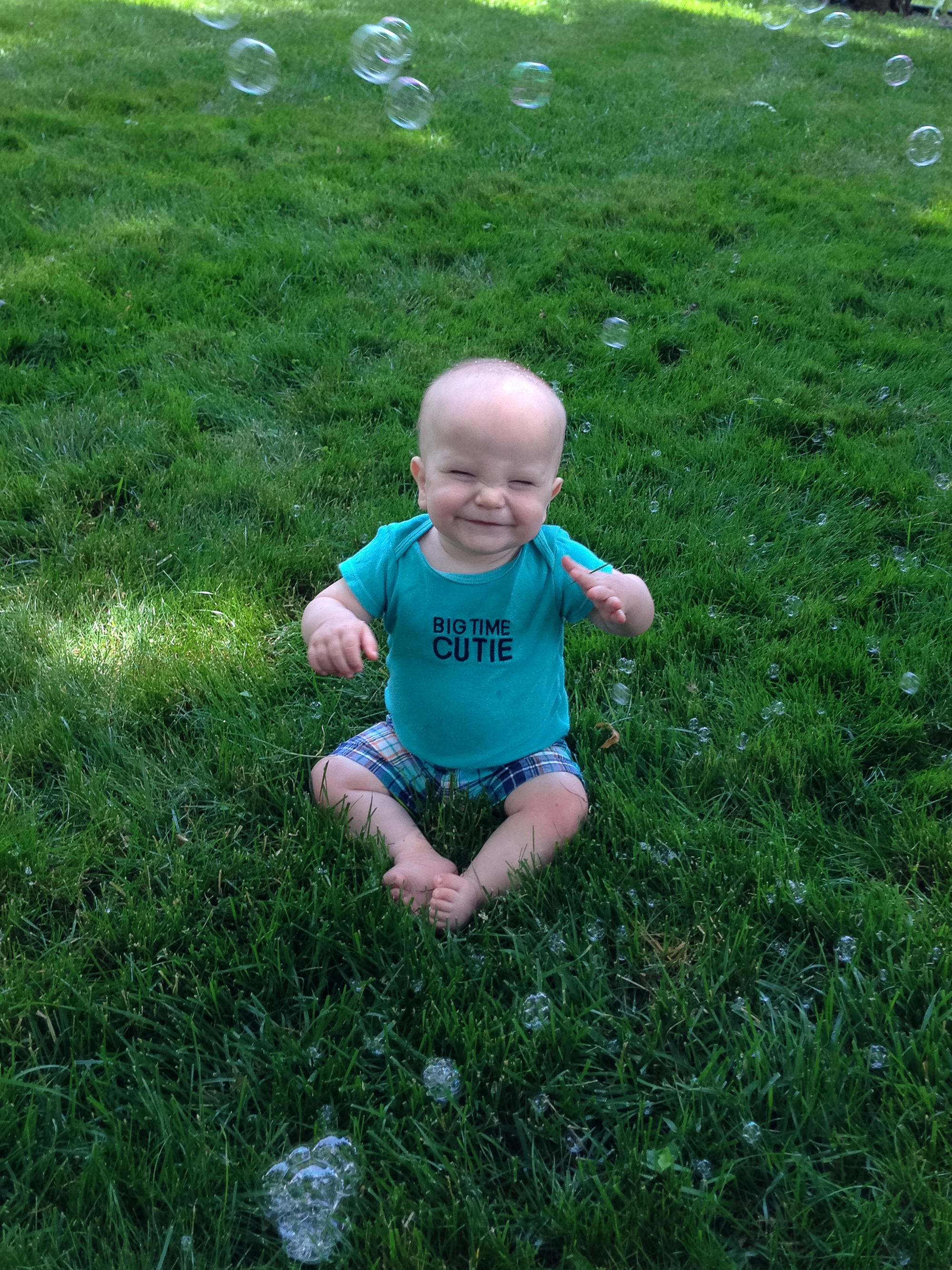 You and your brother show every sign of being inseparable. You make each other laugh and laugh, and you can’t stand not to find your brother if you’re in the same room. In the back of the car together, you both blow raspberries at each other and laugh back and forth. Nobody gets you to laugh like Seth can. You smile a lot, but the laughs are few and far between, except for Seth. Seth enjoys seeing you change and grow every day as much as we do, from clapping back and forth with you to announcing to us that you’re crawling.