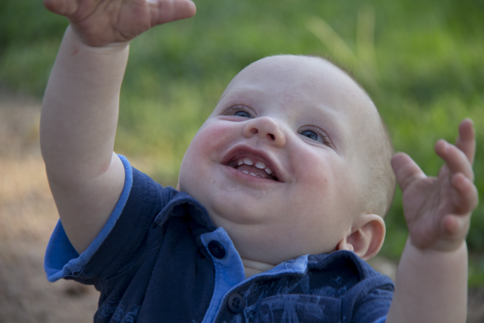 July is officially mimic month. You’re saying the things we say, signing back to us, and mimicking the sounds your toys make. It’s been so much fun as you interact with us more and more. Each and every day brings new ways that you steal our hearts with your smiles, actions, and sounds. You’re starting to recognize the alphabet, from saying “A, B” as you play with your wood puzzle, to filling in the “W” as we say the alphabet to you.