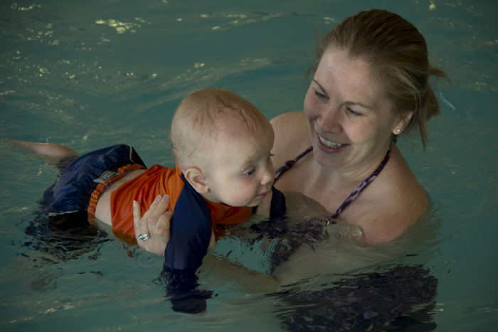 Crawling is king. Everywhere, and getting everything below the level of three feet. You can pull up on anything, and you are so proud of yourself when you do. You find the washer fascinating, just watching the clothes go round and round. The dogs have realized that you’re here, since you’re throwing the ball for them and chasing them down to take it back. You point to things you want to see and want to know about, which is, of course, everything you can see. You even got to go swimming for the first time! You took to the water like a fish, and we’re looking forward to living in San Diego, with pool and beach access.
