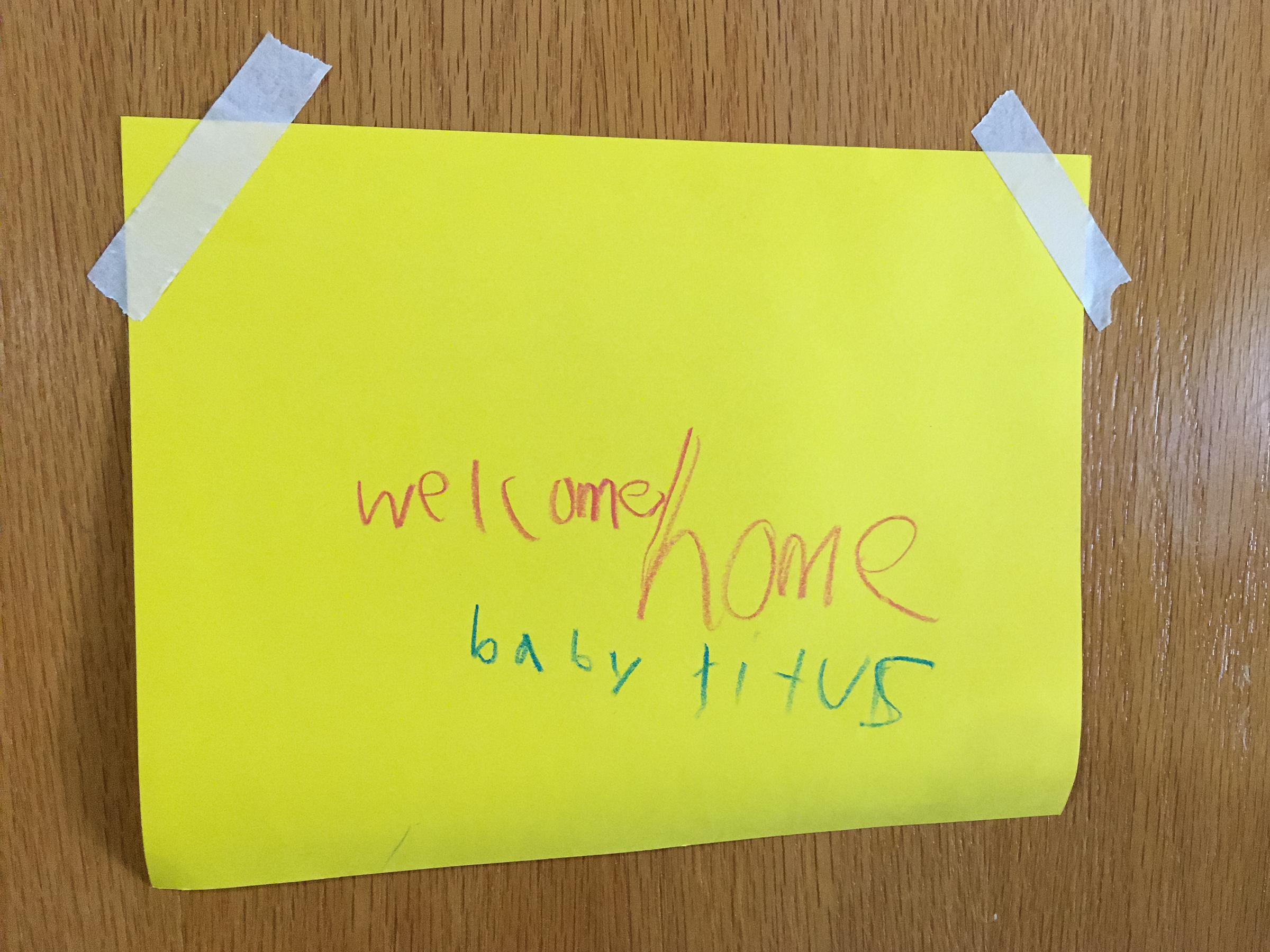 The first thing you encountered when you arrived home from the hospital was a hand-lettered sign from your brothers: