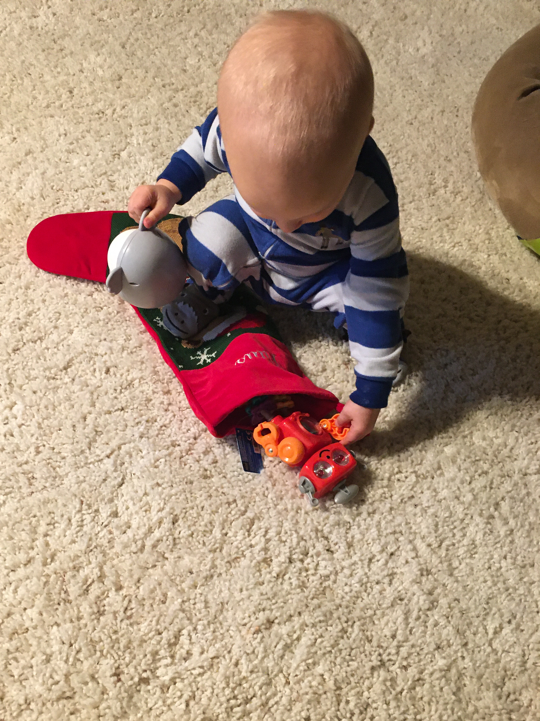 Christmas, as always, was a wonderful family affair. You’re just old enough to enjoy running around with cousins, exploring Grandpa and Grandma’s house, unwrapping presents with little regard for the actual contents, and focusing very hard on making sure the wrapping paper was cleaned up and put in the bag. You made sure to sing along to all the Christmas songs from your car seat, mostly the “ding, ding” and “ring-a-ling” parts, and rehearse “Nana”, “Papa”, “Grandma”, and “Grandpa” for the visit. You rehearsed that all the way to Grandpa and Grandma’s house, and then refused to say it to them for days. However, Grandma’s “Up” movie ornament was the biggest hit. You couldn’t get enough of the theme music it played, and always pointed to it for more. “Up!”