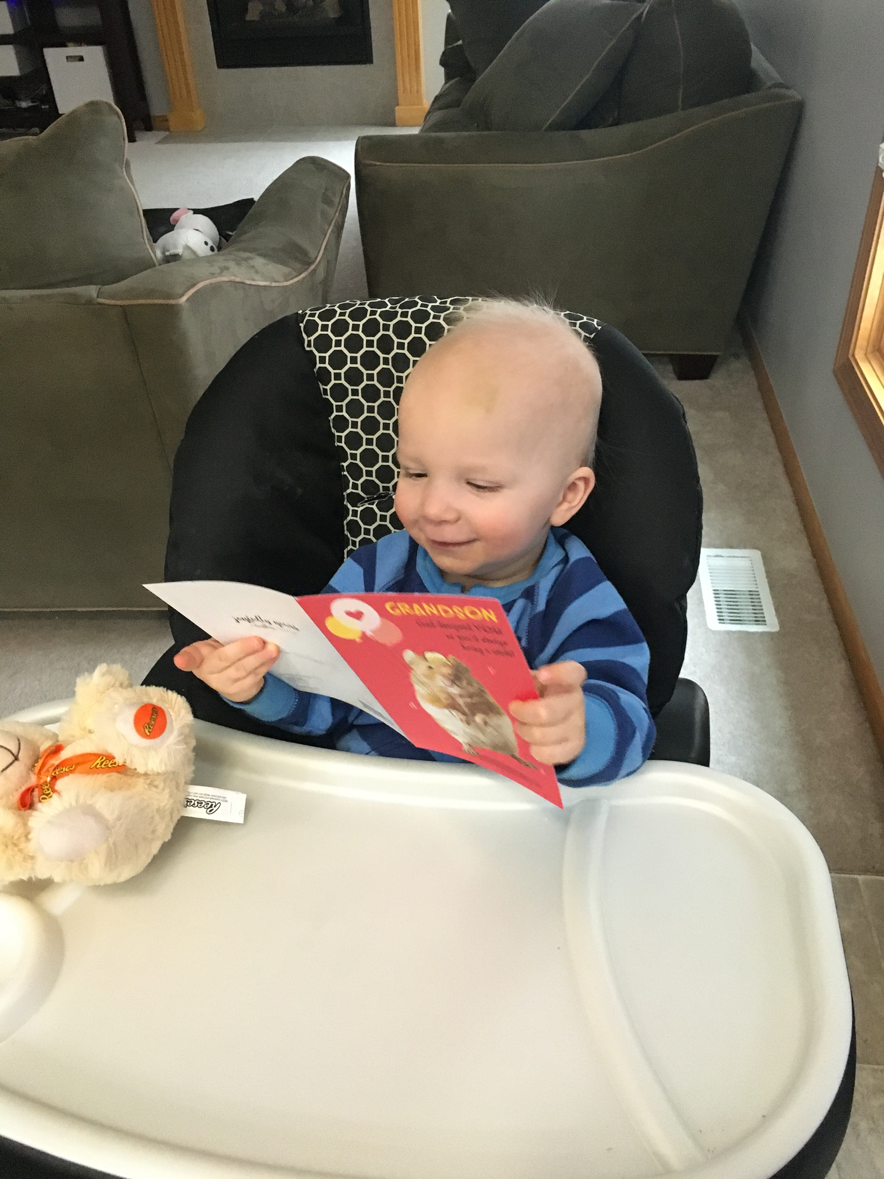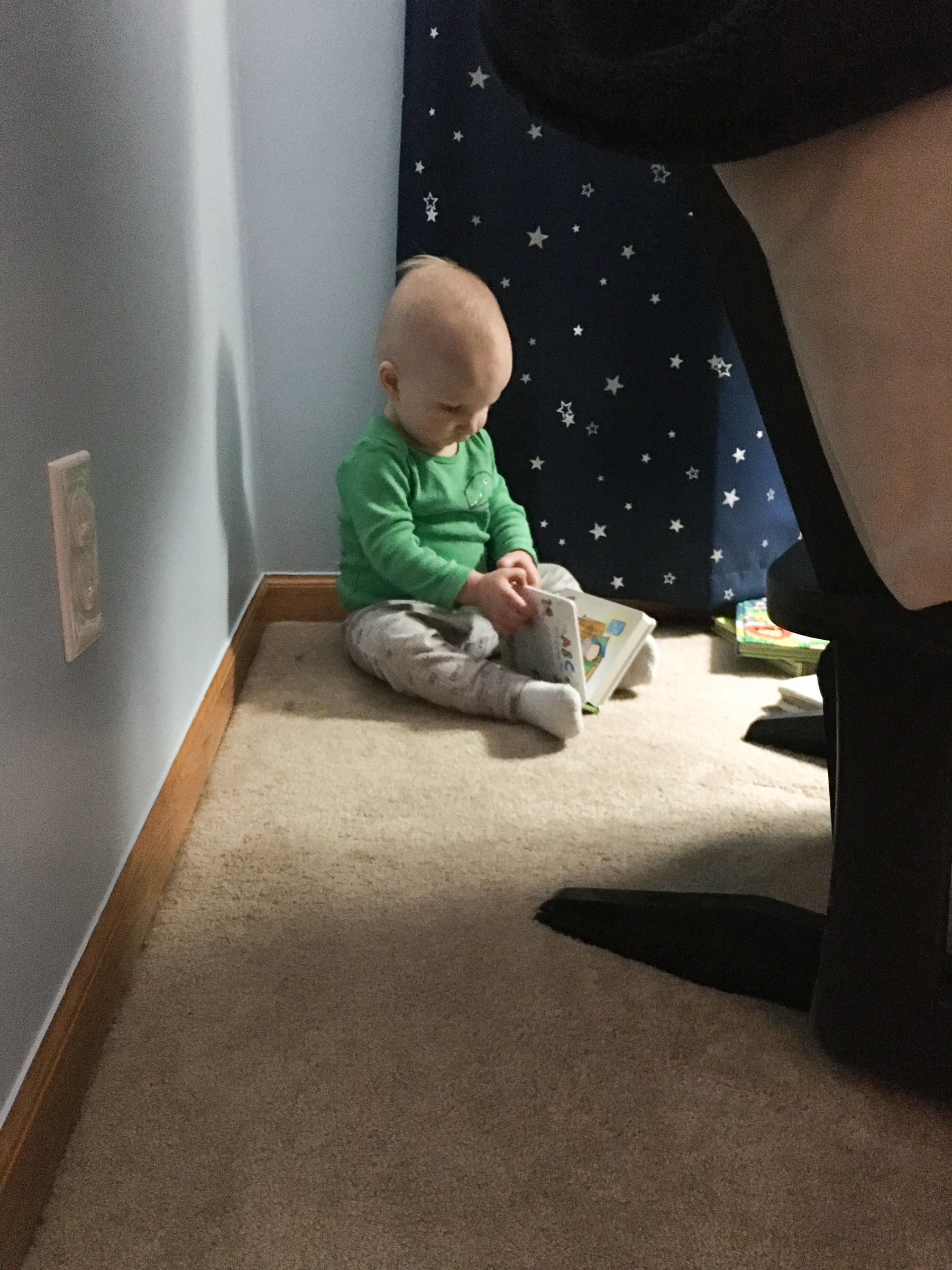 Of our boys, you’re the first one to be willing to admit that you’re actually tired and ready for bed. You’ll actually say “yes” when we ask if you’re ready to go night-night, or will just tell us “night-night”. If we go upstairs in the evening, we will often find you having grabbed a book and crawled behind your rocking chair to read.
