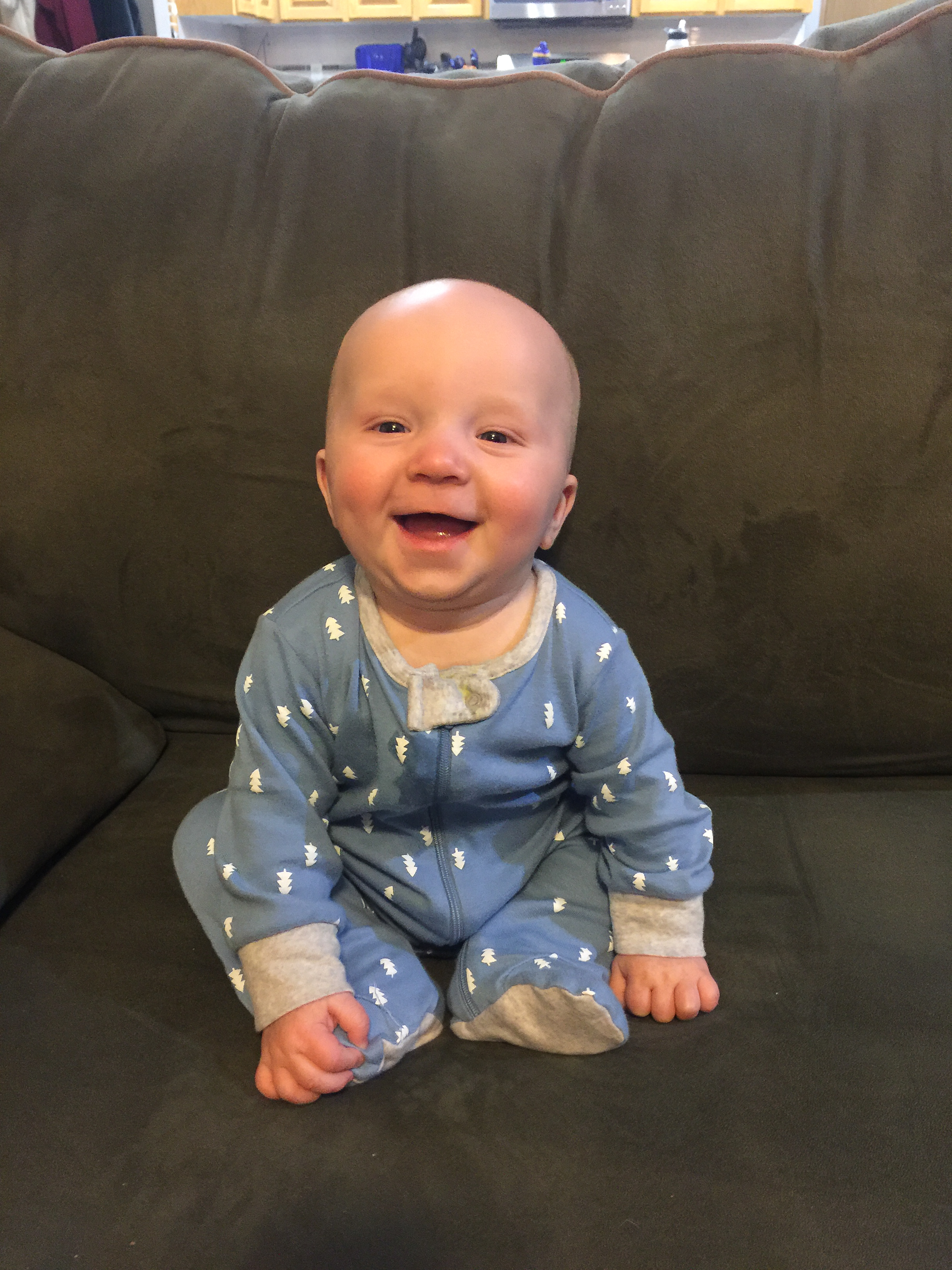 Titus, we cherish the joy that you show every day, always with a smile for everyone you see, even in the middle of hungry or tired fussing. We love to spend each day with you, and we pray that you keep that joy as you get older. Keep on growing, as we get ready to try and keep up with you.