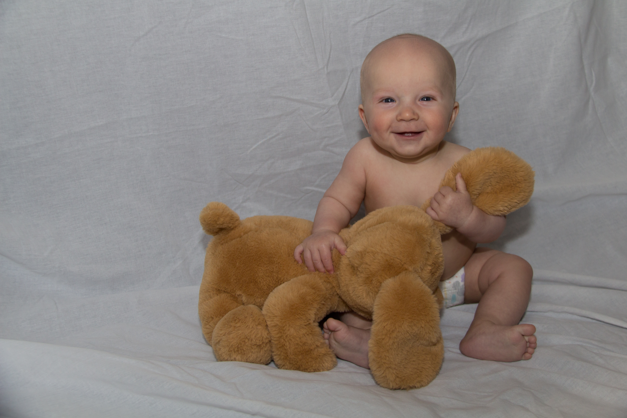 With more food has come the beginnings of signs. You’re pretty clear on “more” and “milk”, accompanying those with “MO” “MO” to make it quite clear that you’re growing, hungry, and the most important mouth at the table. We have lots of other babbling, as well. You’re ready and excited to contribute to the overall noise floor in our environment, with babbles and squeals of happiness.