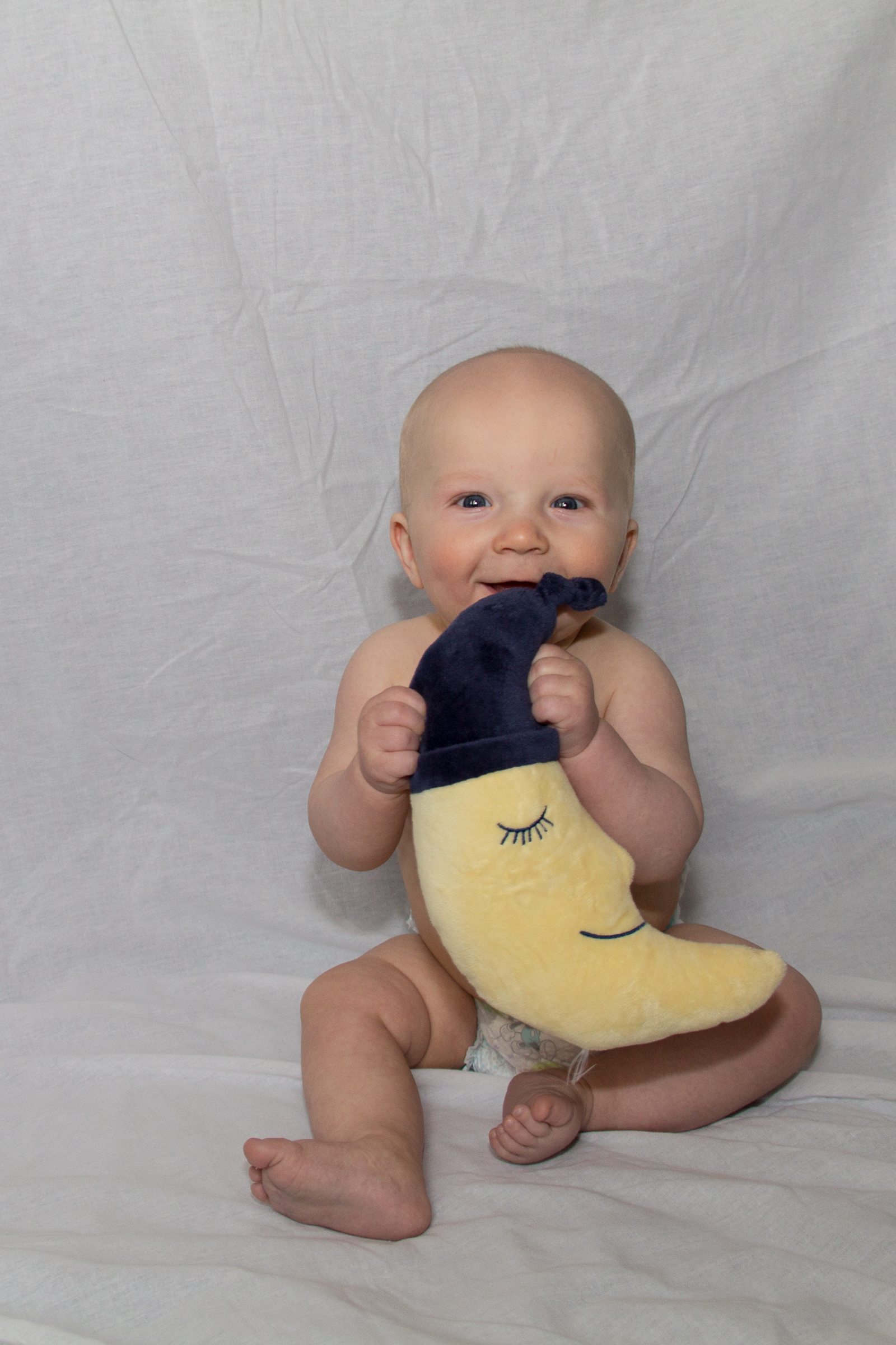 We’re learning that we don’t need to eat at 2 or 3 AM in the morning. Instead, while you figure out that Mommy’s not going to feed you, you’ve been using the time for skill work in your crib. From finding your wubbie and putting it in and out of your mouth, to getting up on those knees and rocking, it’s a good time to practice. Fortunately, you’re also practiced at going back to sleep on your own.