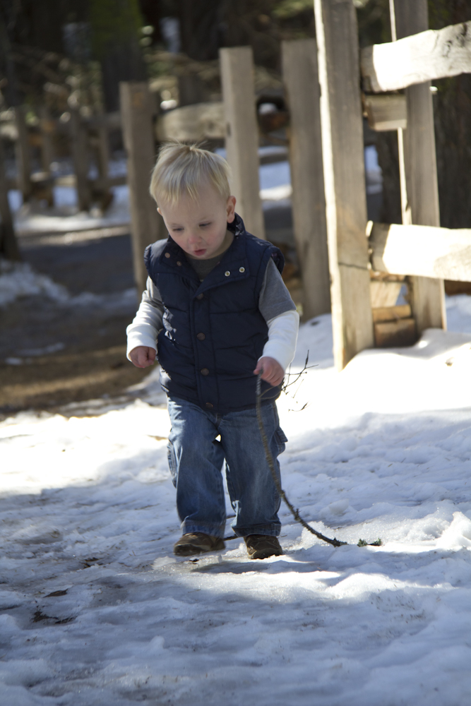 - “I digging for dinosaur bones” with a stick in the snow at Sequoia National Park – methinks we’ve been reading Curious George to you a lot.