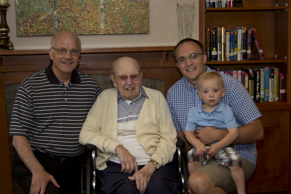 Sadly, your great-grandpa passed away the 24th of this month. It’s a blessing that we were all able to go back and see him in July, and have four generations of Witmer men sit down together. You come from quite a legacy of wonderful husbands, fathers, and men, from your great-grandpa to your grandpa (Daddy’s still working on it). Loving, dependable, responsible, and respected. You can be proud to be a Witmer, little buddy. Great-grandpa was a pretty amazing guy. You probably won’t remember getting to meet him, but you’ll meet him again one day, a long time from now, and you can be sure that he’ll remember you.