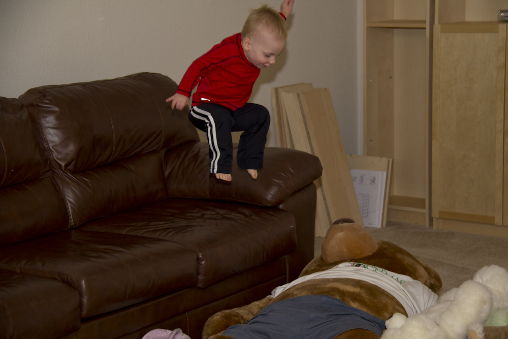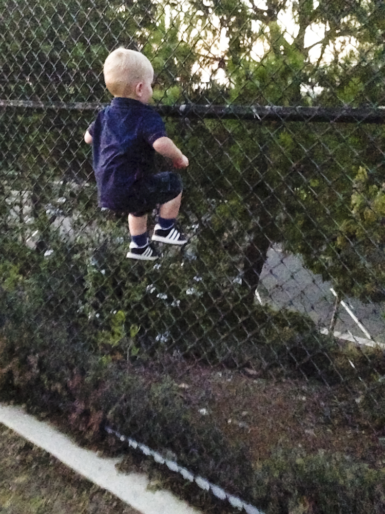 We’re very fortunate that you’ve got coordination to go along with your growing love for extreme sports. Climbing out of the crib not one or two, but three times. Copying your cousins in diving headfirst down the slide. Climbing six feet up a chain link fence. No fear of the 15 foot cargo nets at Sea World. It’s a good thing we’re laid back. It’s also looking like a good thing that we have good health insurance, but that might come later. You can try and break Daddy’s record for most trips to the urgent care for stitches in a single year.