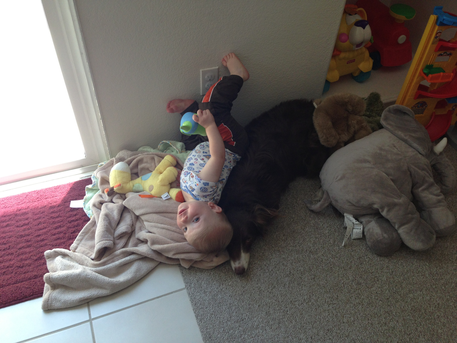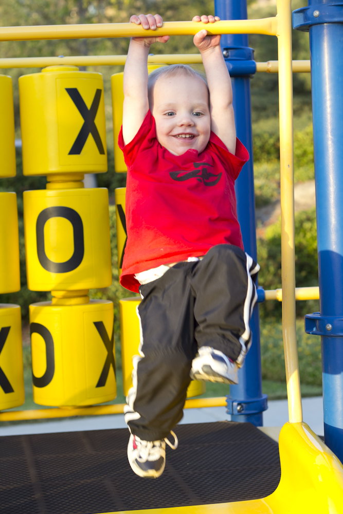 This month is really all about more complete sentences. Each day you’re stringing more words together, and more thoughts. All these new words you learn from us, and quickly fill in the meanings. On seeing a picture of yourself: “Cute baby!” You now come over, pull on our hands, and ask that we “come with you” to play with your toys, open up the sandbox, or anything else you want to do, including spinning in my desk chair or getting on the big swings at the park, which you want to “do self”.