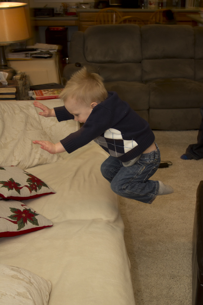 The season of Christmas reminds us of many gifts, foremost the gift of Christ himself. Especially for Mommy and me, though, we are reminded of how much you are a gift to us. This month brought almost 3 weeks in Colorado, with Nana and Papa, Grandpa and Grandma, aunts, uncles, and cousins! Much fun was had by all, even Molly. She got chased around relentlessly, but also herded constantly, so all was in balance. The trip to Colorado was a wonderful time with family and friends, including your first sleepover with Grandpa and Grandpa. Much fun was had by all involved, I’m sure.